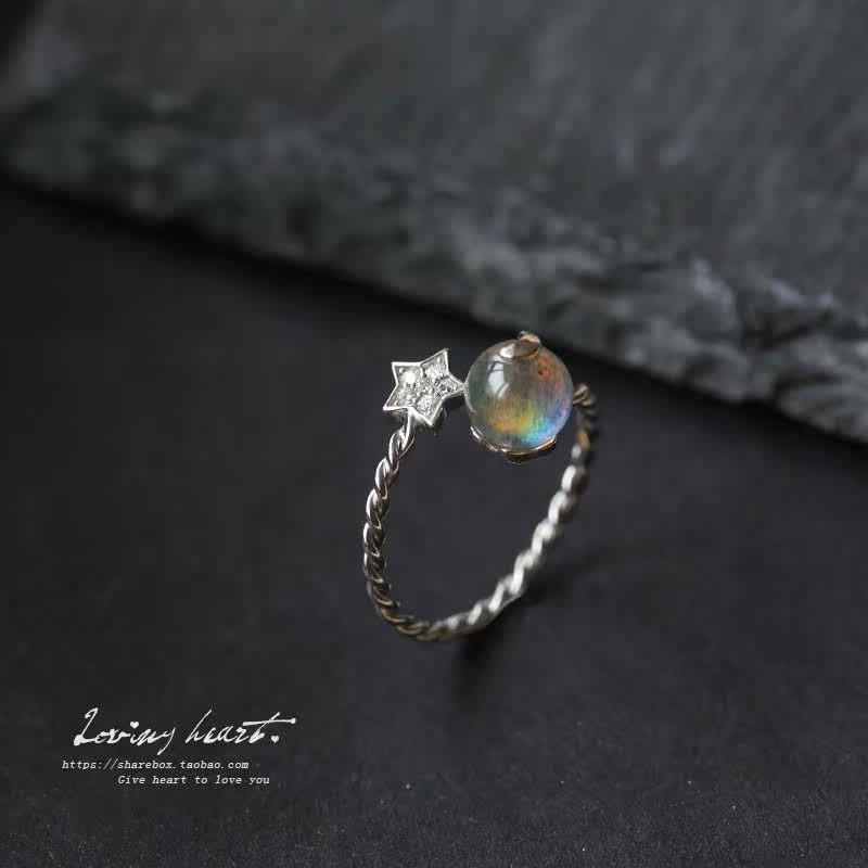 Lune étoiles s925 en argent sterling bague de pierre de lune bague femme index ouverture du Japon et de la Corée du Sud réseau marée rouge gens étudiants en cristal de fraise