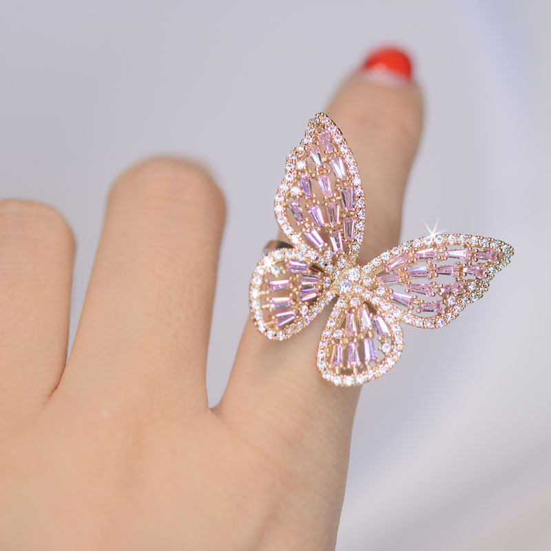 Le Japon et la Corée du Sud version de l'ouverture réglable index de papillon micro-incrusté stéréo bague bague bague flash diamant net rouge nouveaux bijoux