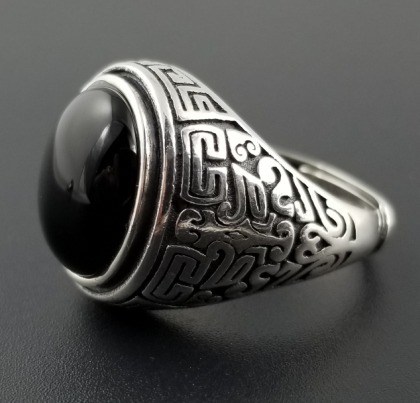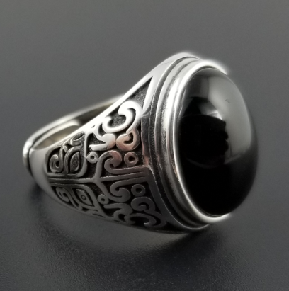 Nouveau S925 en argent sterling naturel agate noire bague homme mode dominateur rétro anti-allergique argent