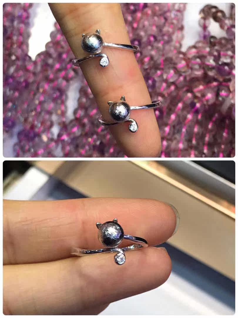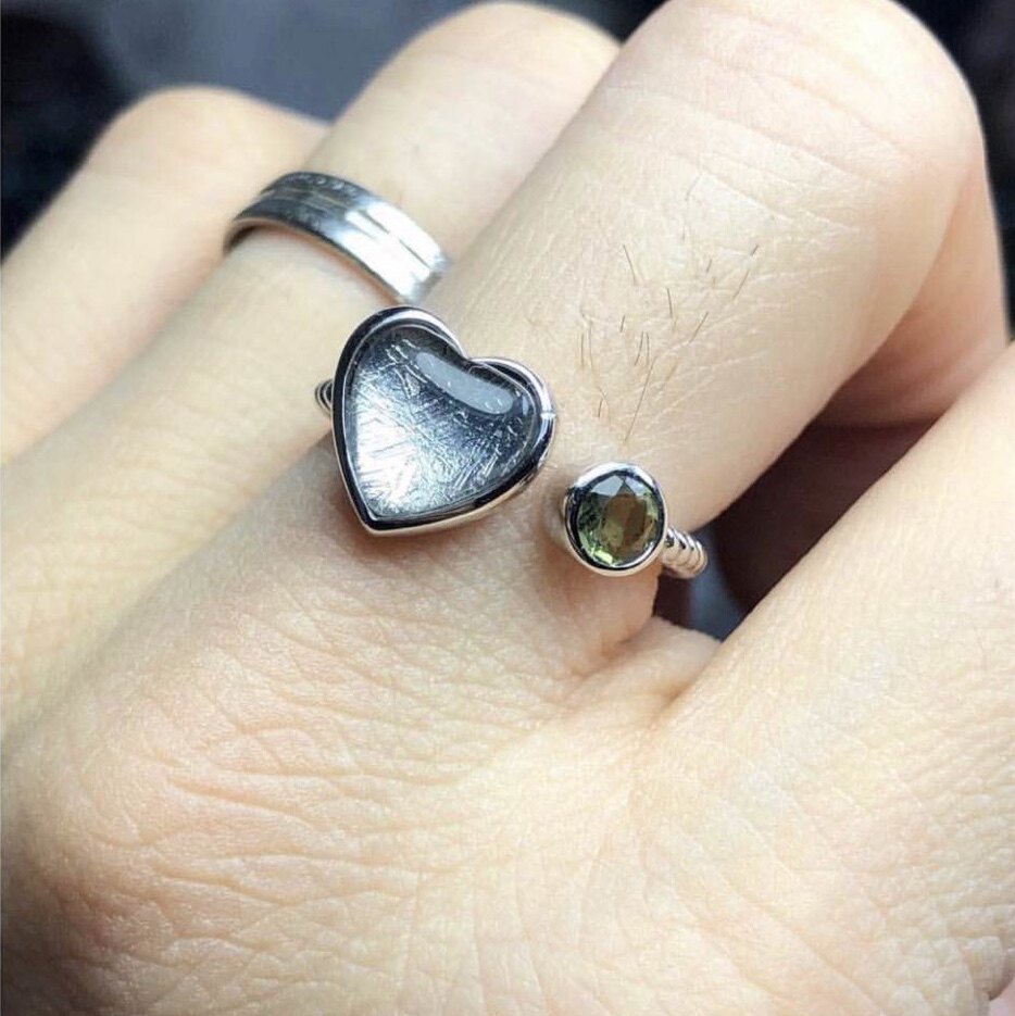 Cristal naturel d'origine cristal naturel ciel fer météorite tchèque G fer 925 argent bague en direct