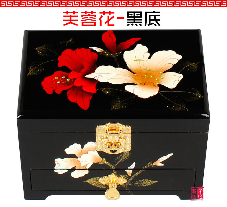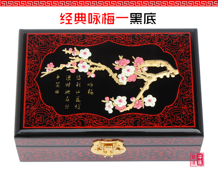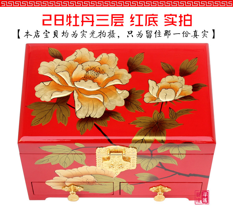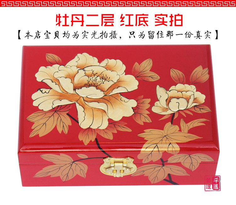 Pingyao pousser la laque rétro classique chinoise boîte à bijoux princesse en bois dressing maquillage boîte avec serrure mariée mariée Informations techniques - Classification de couleur : 21 double couche - prune, 21 double couche - fond rouge, Golden Peony - Noir, Pivoine Doree - Rouge, 28 pivoine d or - noir, 28 pivoine d or - rouge, Noeud chinois Noir , Double pivoine Noir , Dragon et Phoenix mariee Noir , Yongmei Noir , Trois pivoine Rouge , 21 double couche - fond noir, Mariee riche Noir , Fleur bonne lune Rouge , Double pivoine Rouge , Phoenix Opera Pivoine, Mariee mariee Noir , Fleur d hibiscus Rouge , Mariee riche Rouge , 28 - Noir , Yongmei Rouge , Fleur de prunier Rouge , Phnom Penh Pivoine - Rouge , Fleur d hibiscus Noir , Gris clair, Gris fonce, Gris, Argent, Noir, Rouge rose, Rose, Rouge, Crepuscule, Pasteque rouge, Vin rouge, Kaki, Gingembre jaune