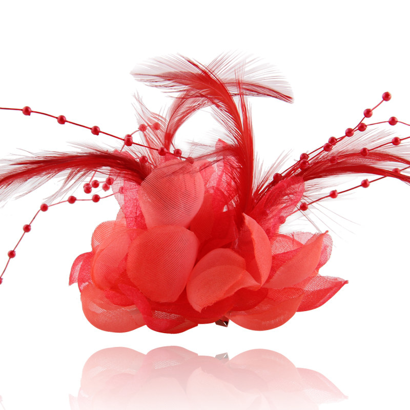 Broche ne mariée tête de plumes de soie fleurs fil Broche accessoires cheveux perlés à la main multicolore célébration danse Informations techniques - Matière : Fils de soie