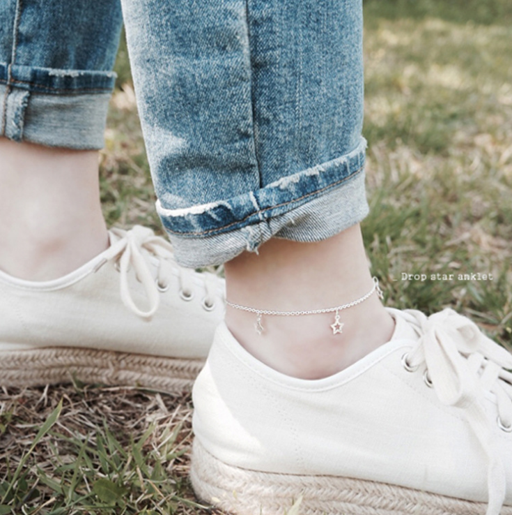 D'origine S925 Sterling Argent Cheville femme Creative La Main Creux Gland Star Forme Meteor Cheville Pied Décoration Cadeau
