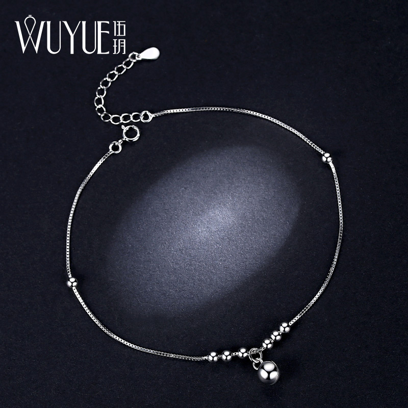 S925 cloche argenté cheville femme voix ne version simple du Sen Department Palace cloche cheville chaîne de transfert perles bijoux chaîne de pied