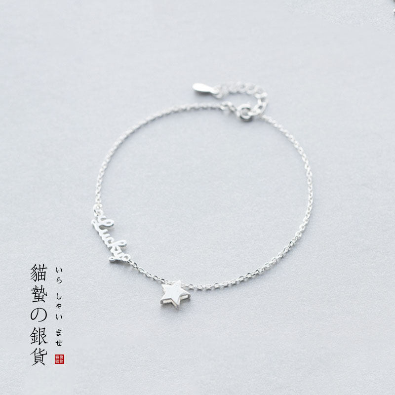 Chat ucky Lucky étoile à cinq branches simple Mori en argent sterling cheville Japon et Corée du Sud sauvage printemps et en été de nouvelles amies bijoux cadeau