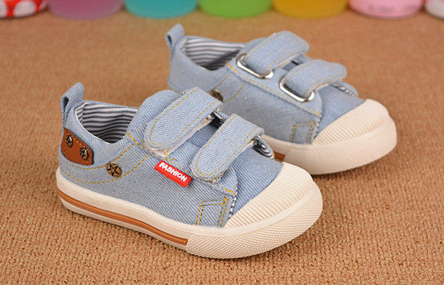 Baskets enfants en toile coutures cuir pour printemps - semelle caoutchouc antidérapant Ref 1023736