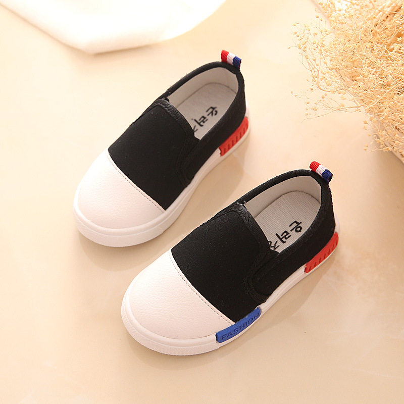 Chaussures de tennis enfants en toile coutures cuir pour printemps - semelle caoutchouc antidérapant Ref 1023713