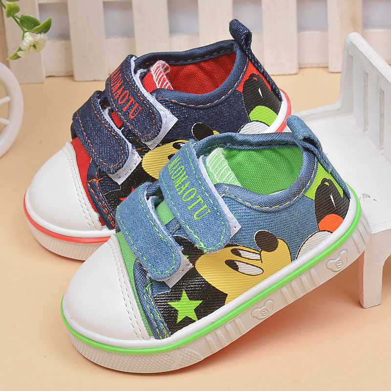 Chaussures de tennis enfants en toile coutures cuir pour printemps - semelle caoutchouc antidérapant Ref 1025352