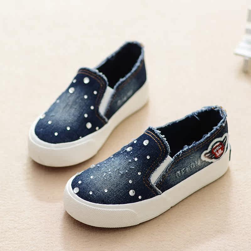 Chaussures de tennis enfants en toile avec perles pour printemps - semelle caoutchouc antidérapant Ref 1028795