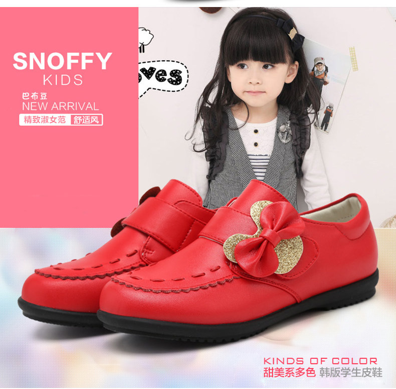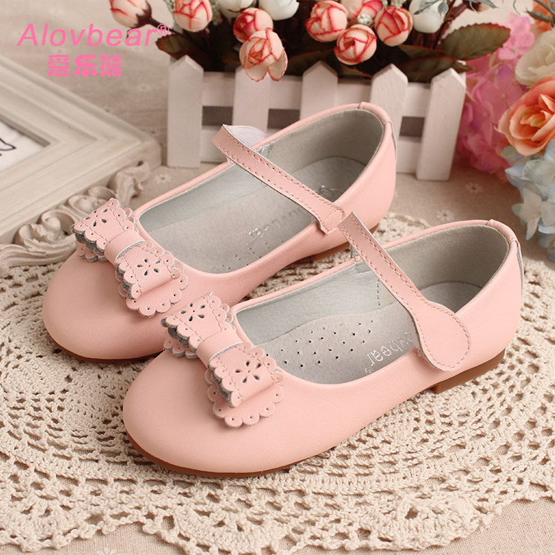 Chaussures enfants en cuir de vache fendu DINGDANG ronde creux pour printemps - semelle caoutchouc Ref 983502