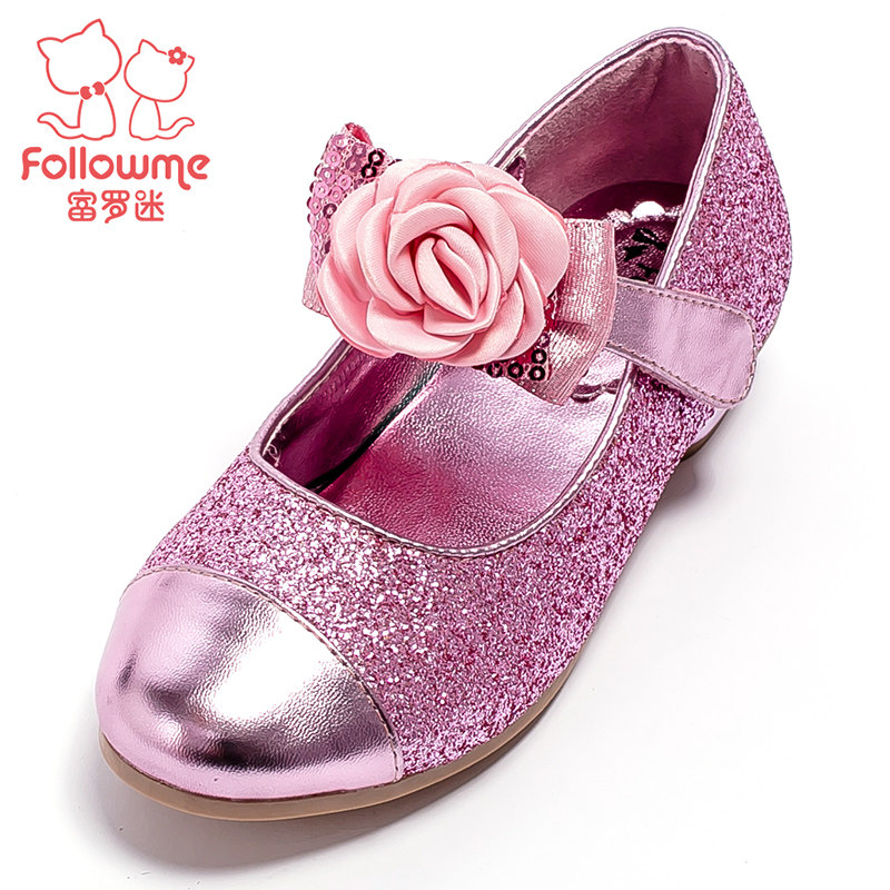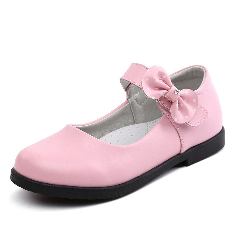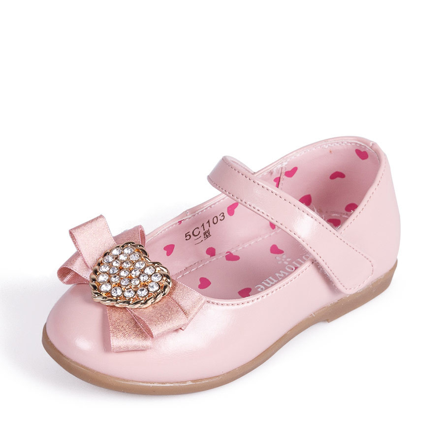 Chaussures enfants en cuir de vache fendu BARBIE ronde avec perles pour printemps - semelle caoutchouc Ref 1005106