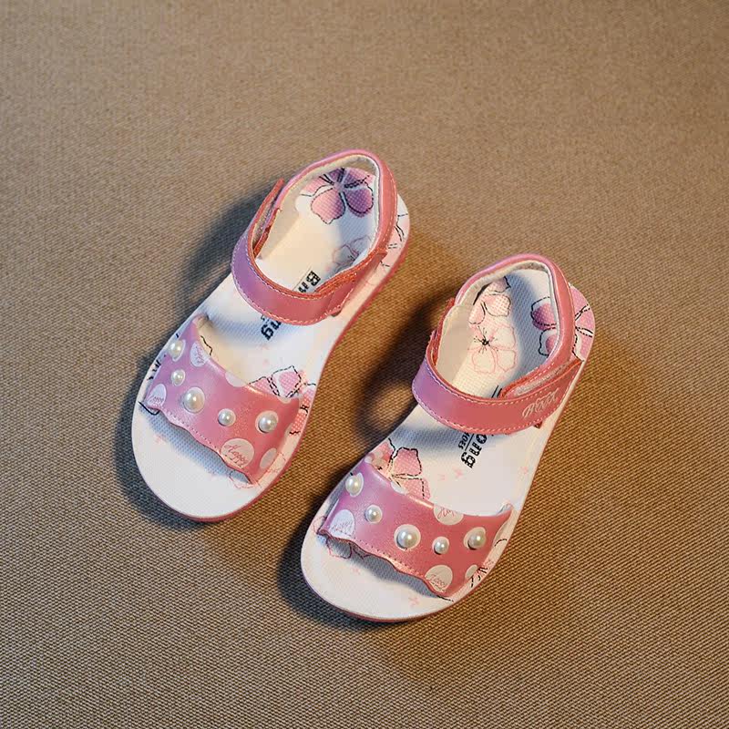 Chaussures enfants en cuir de vache fendu avec perles pour été - semelle EVA Ref 1040351