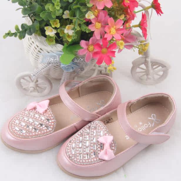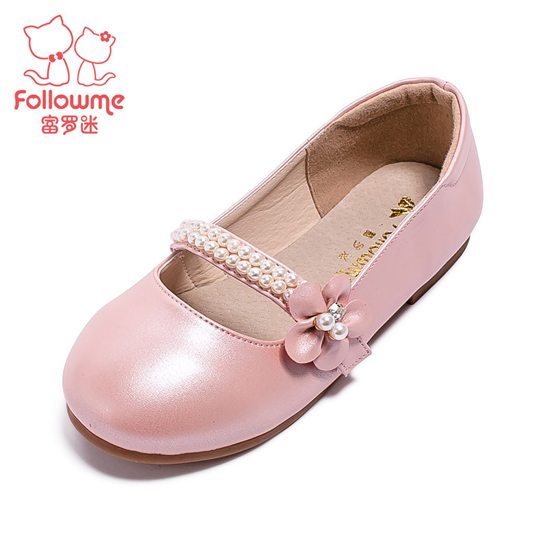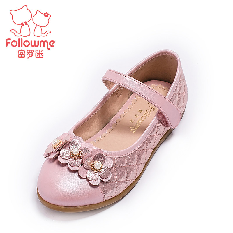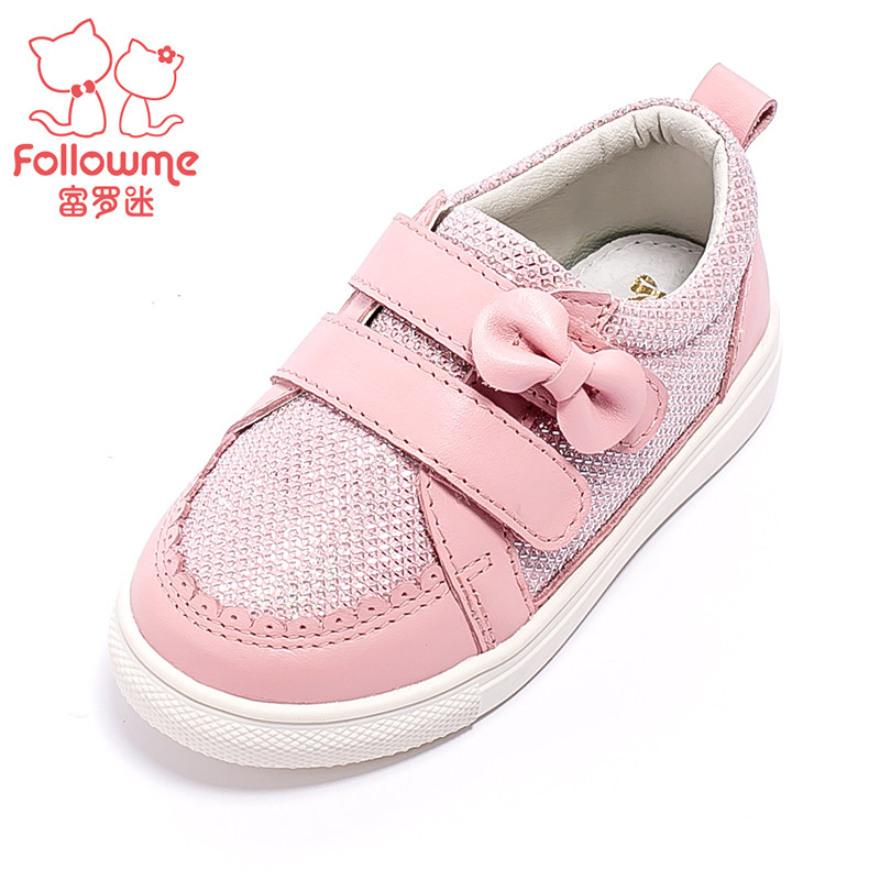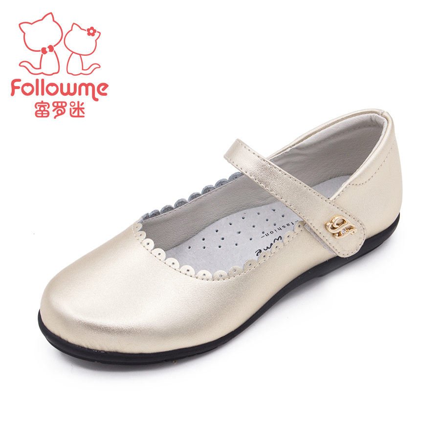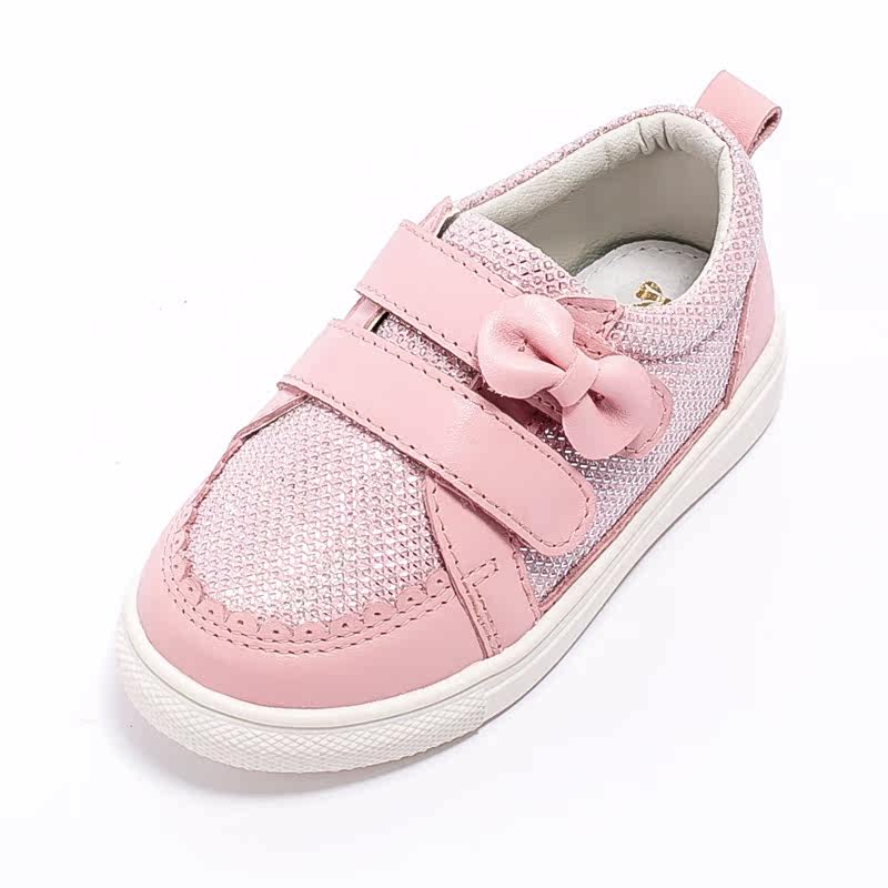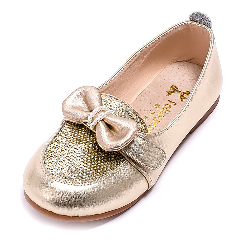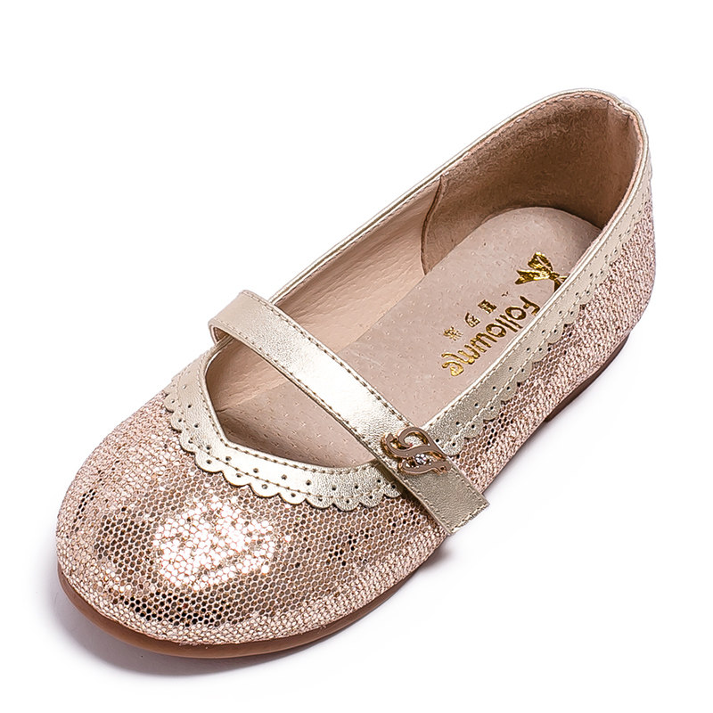 Chaussures enfants en cuir de vache fendu FOLLOW ME ronde paillette pour printemps - semelle TPR Ref 984586