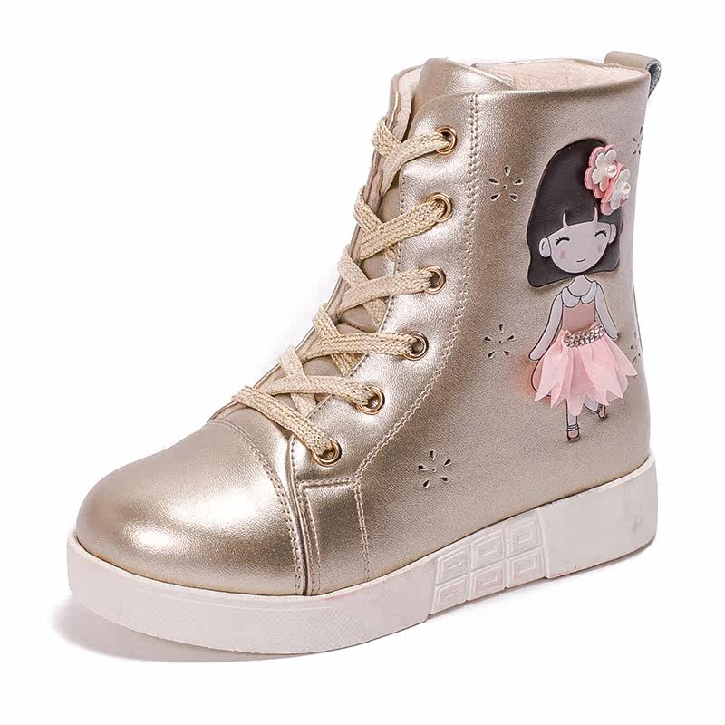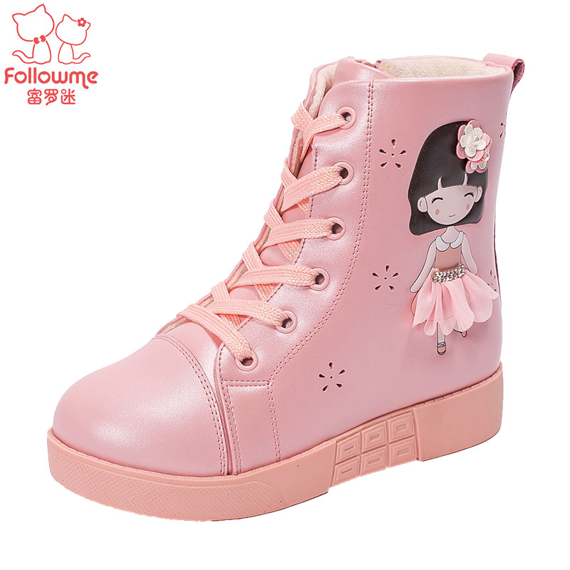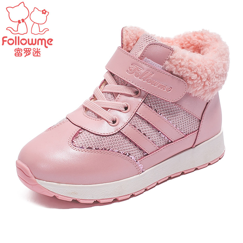 Chaussures enfants en cuir de vache fendu FOLLOW ME ronde paillette pour hiver - semelle fond composite Ref 1028612