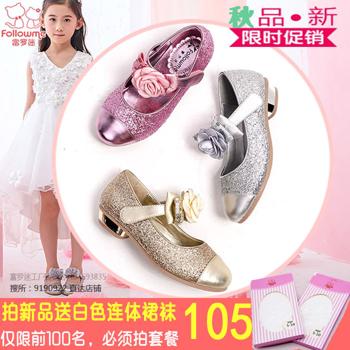 Chaussures enfants en cuir de vache fendu FOLLOW ME ronde paillette pour printemps - semelle TPR Ref 1004145