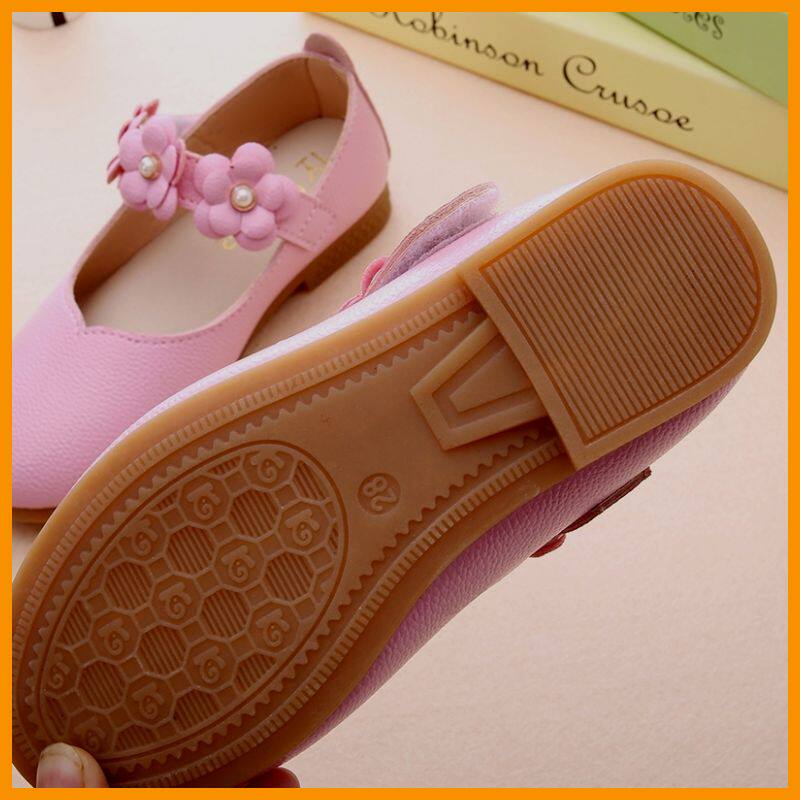 Chaussures enfants en cuir de vache fendu ronde avec perles pour printemps - Ref 1026230