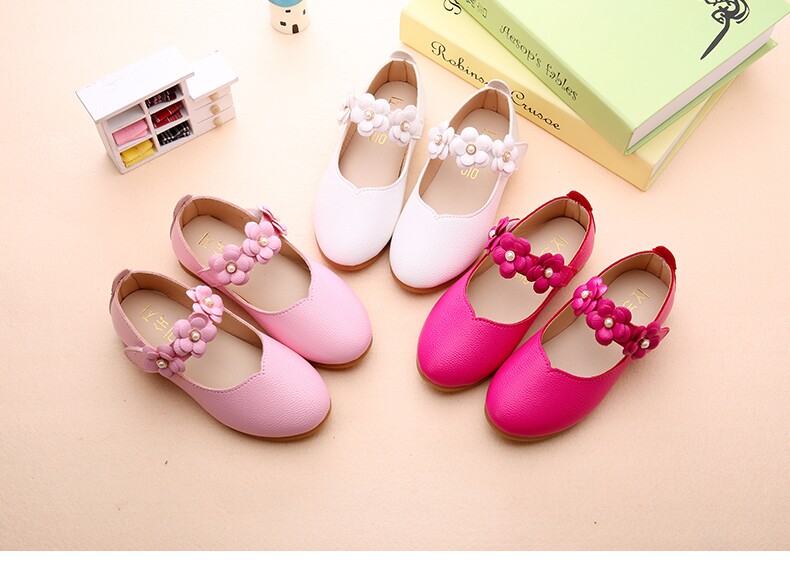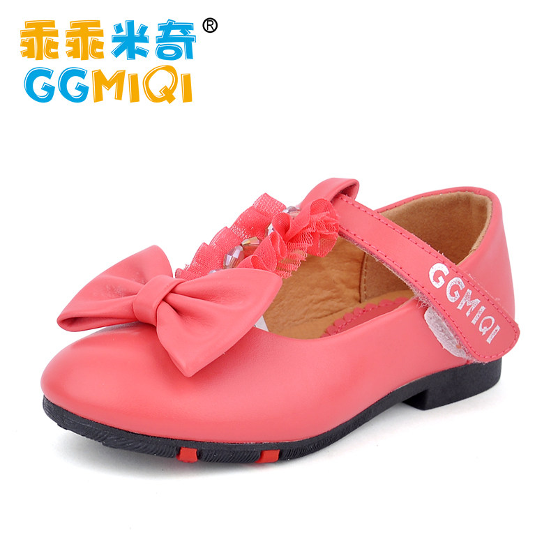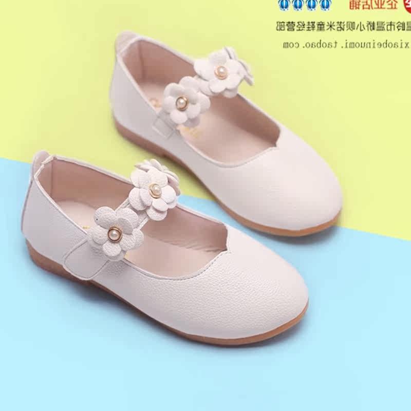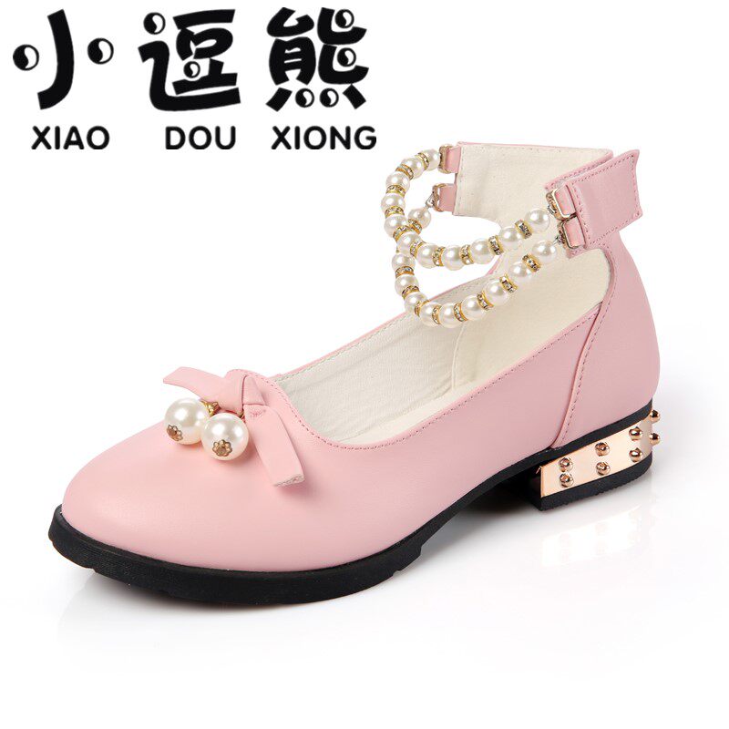 Chaussures enfants en cuir de vache fendu ronde avec perles pour printemps - Ref 984127
