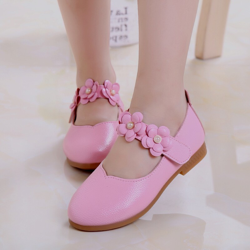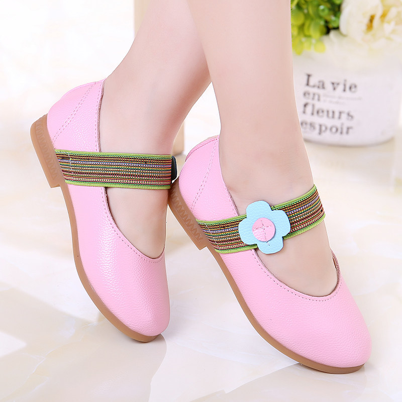 Chaussures enfants en cuir de vache fendu ronde brodé pour Toute saison - Ref 983105