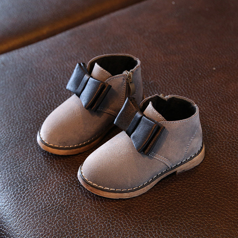 Chaussures enfants en cuir de vache fendu ronde coutures pour hiver - Ref 1004229