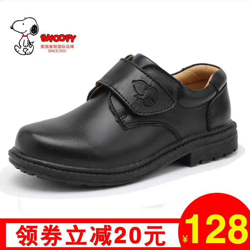 Chaussures enfants en cuir de vache fendu SNOOPY ronde pour printemps - semelle TPR Ref 1015690