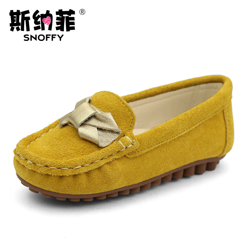 Chaussures enfants en cuir de vache fendu ronde pour printemps - Ref 983378