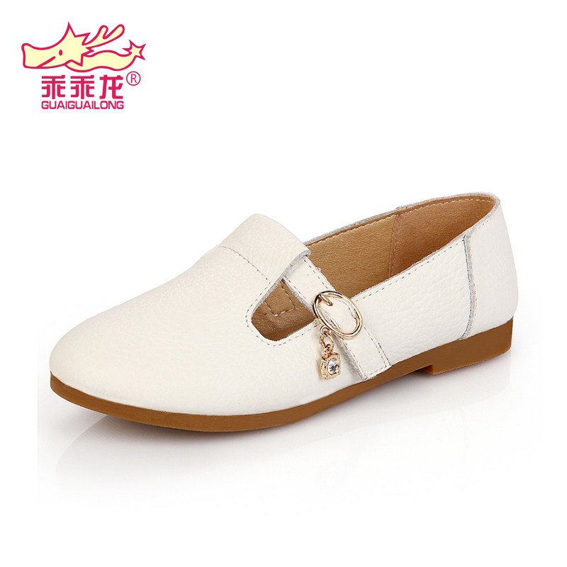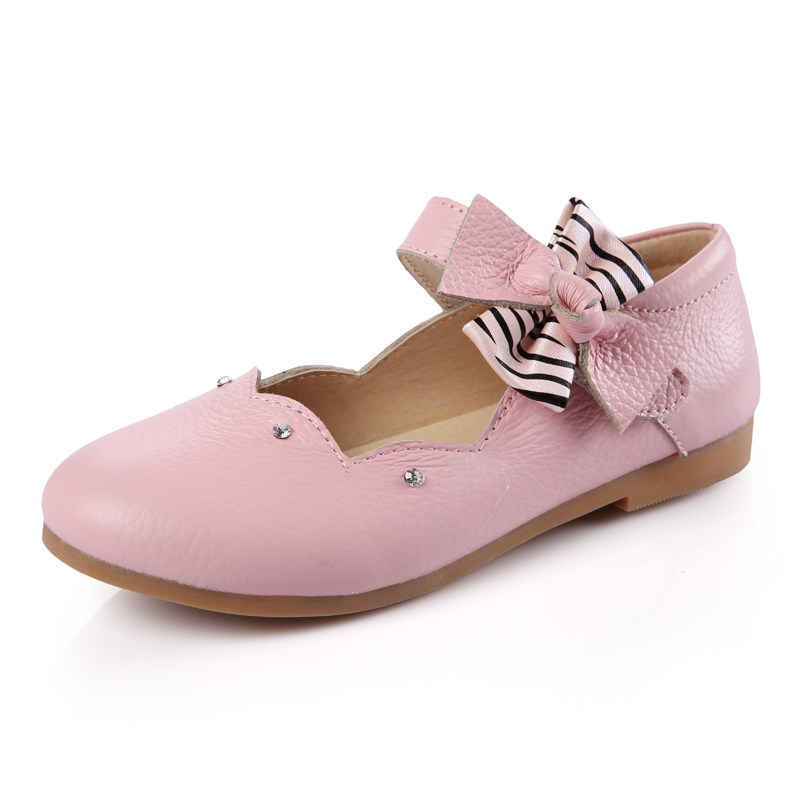 Chaussures enfants en cuir ronde avec perles pour printemps - semelle caoutchouc Ref 1006305