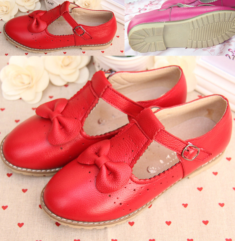 Chaussures enfants en cuir ronde avec perles pour printemps - semelle caoutchouc naturel Ref 983305