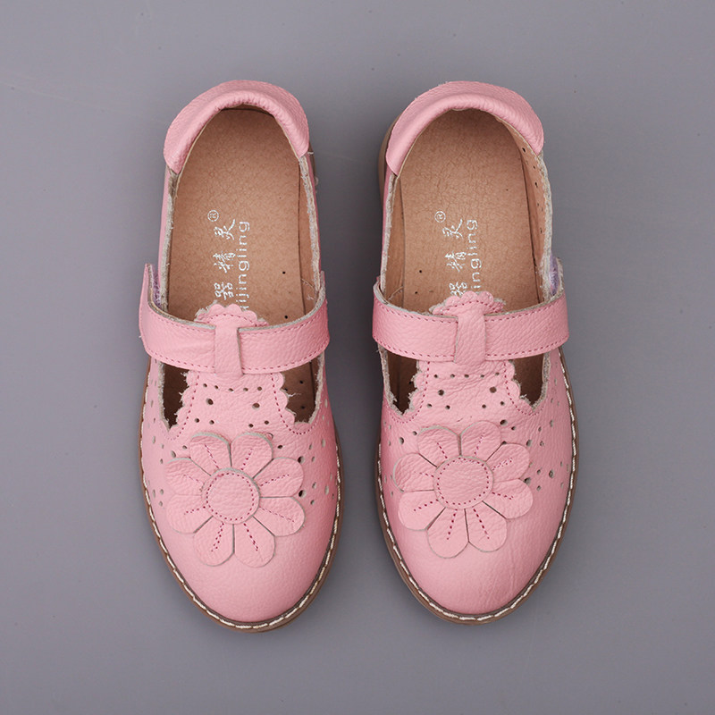 Chaussures enfants en cuir ronde brodé pour printemps - Ref 983158