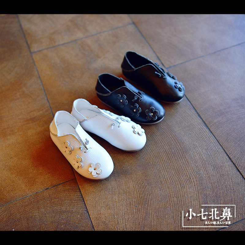 Chaussures enfants en cuir ronde avec perles pour printemps - Ref 1029037