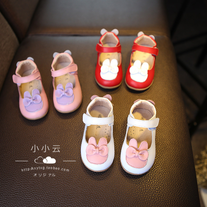 Chaussures enfants en cuir ronde avec perles pour printemps - semelle caoutchouc Ref 1034594