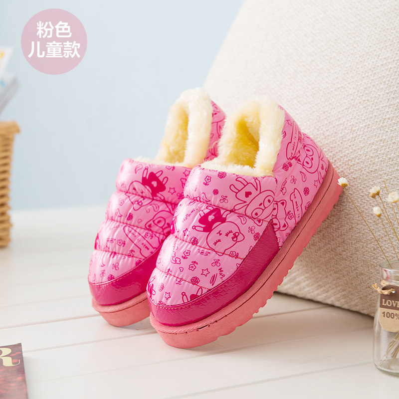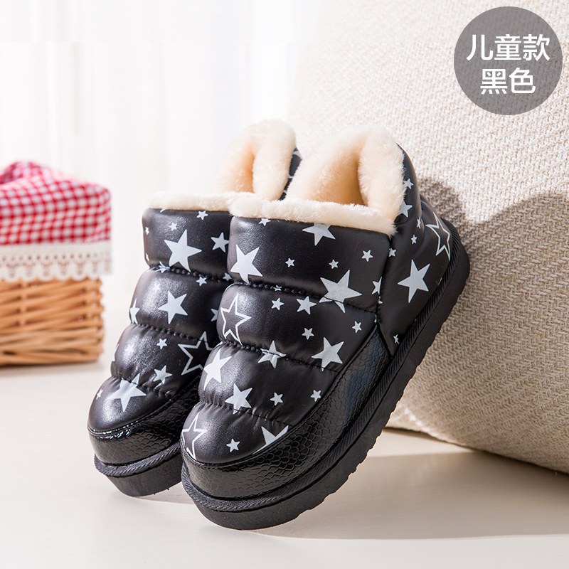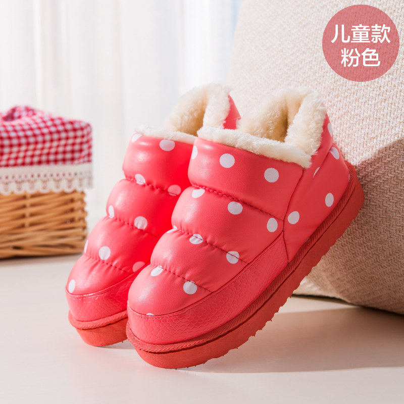 Garçons et filles hiver pantoufles en coton sac en cuir PU bas rembourré dérapant imperméable chaud mignon pantoufles Promotions Informations techniques - Avec des matériaux en cuir : autre
