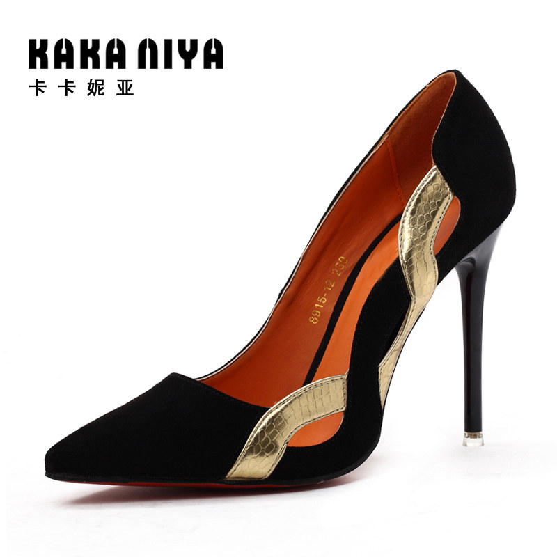 Chaussures de printemps femme en pointu ouverture profonde, décoration métallique - Europe semelle caoutchouc Re
