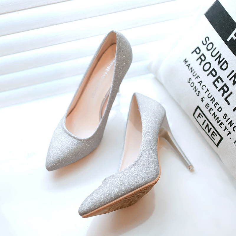 Chaussures de printemps femme en fibre Superfine pointu ouverture profonde, paillette - Europe semelle caoutchouc Ref 99