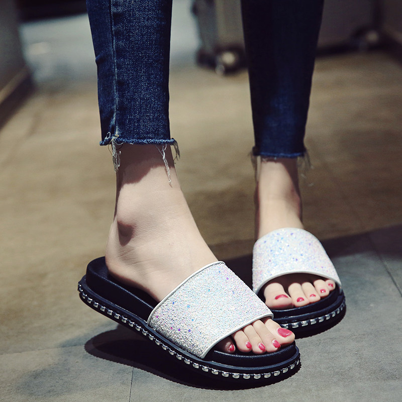 Sandales femme en tissu paillete - semelle caoutchouc Ref 2666889