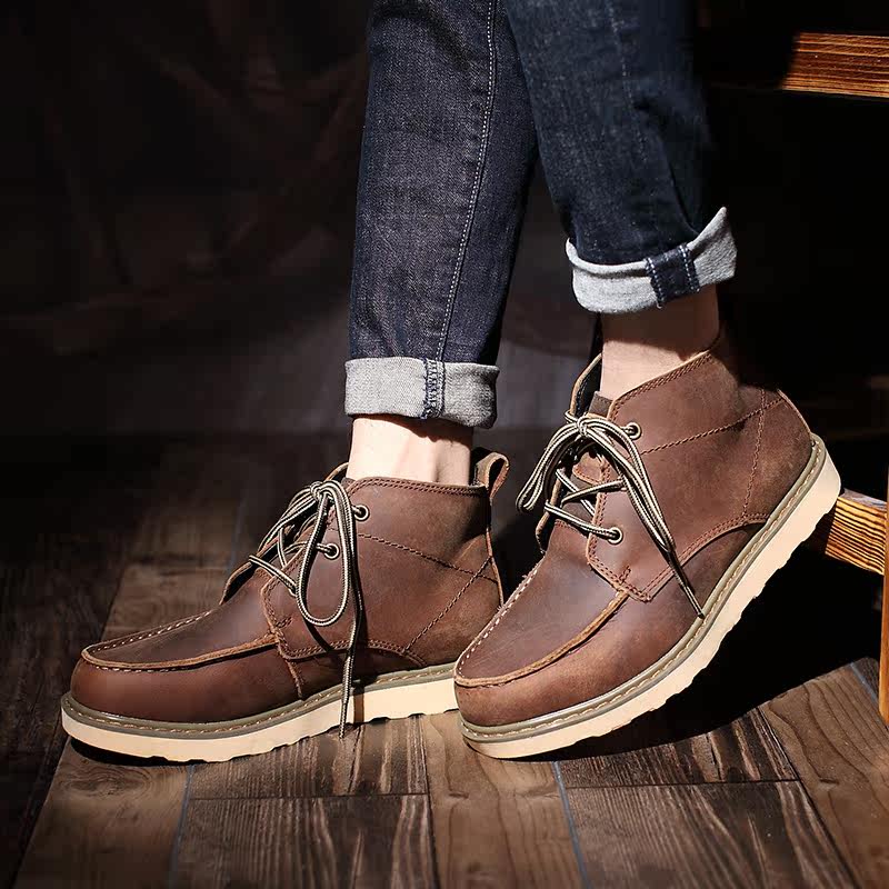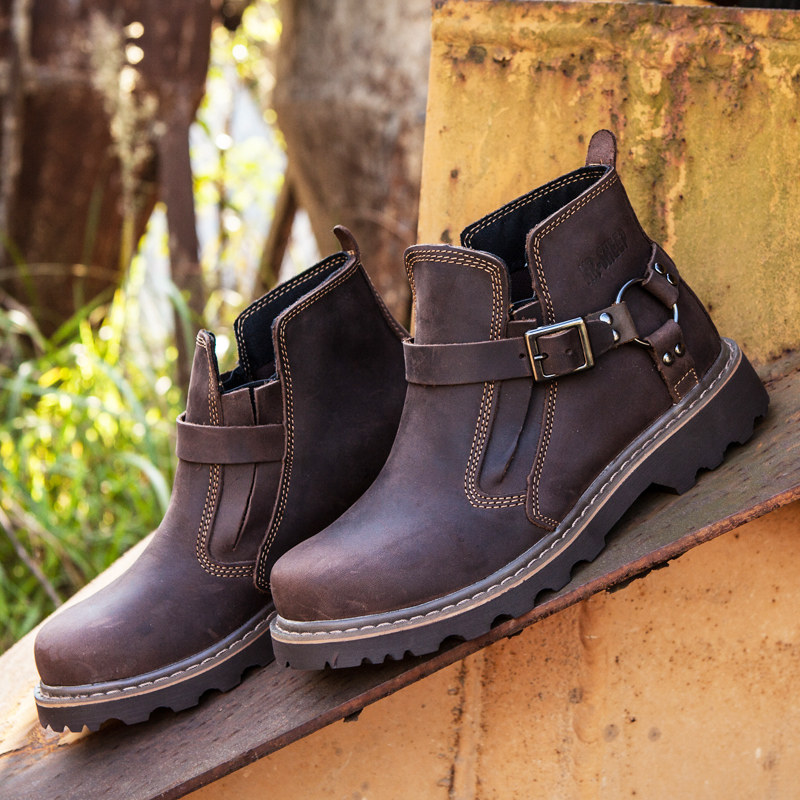 Boots - chaussures en Première couche de cuir, En plus de de vache, ronde pour printemps - Angleterre - semelle caoutcho