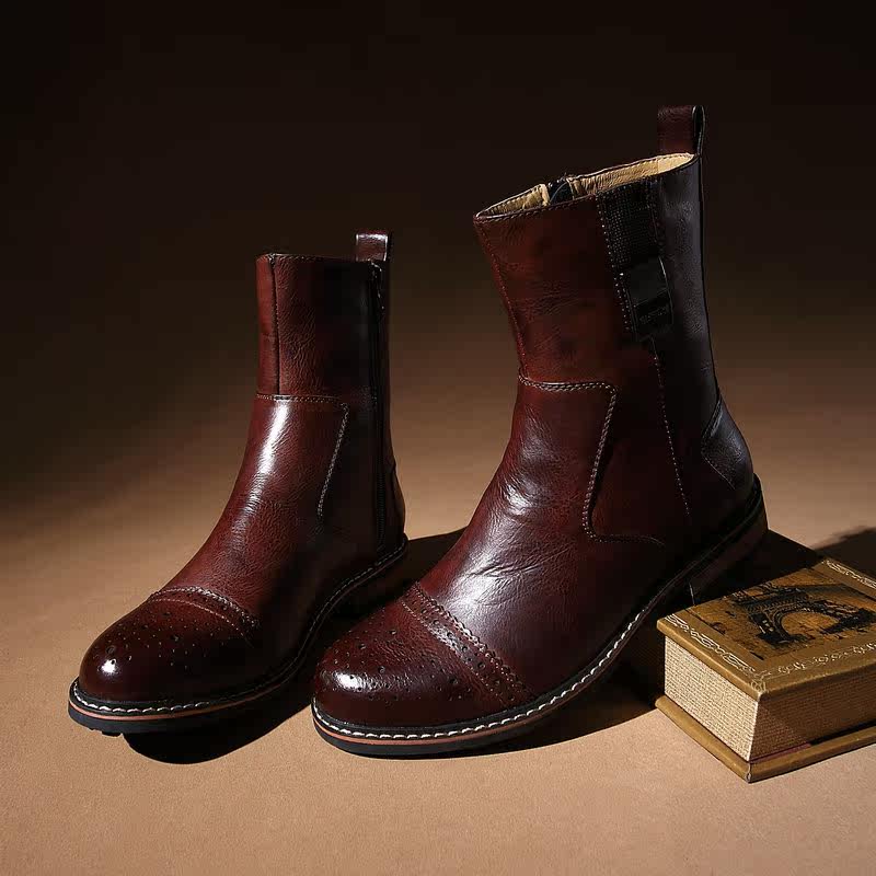 Boots - chaussures en cuir tête carrée pour hiver - Angleterre - semelle caoutchouc - Ref 952154