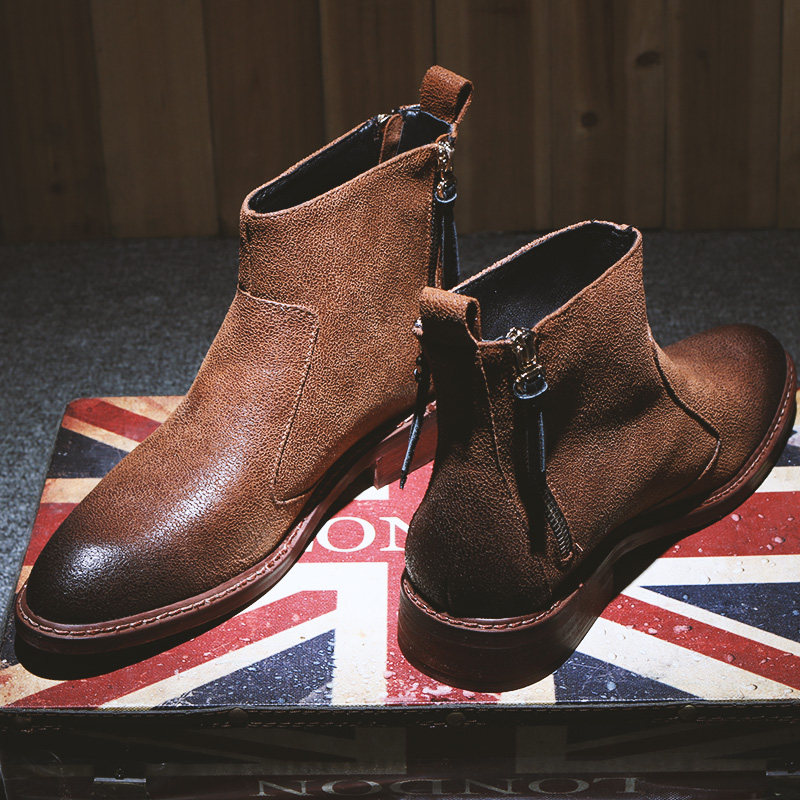 Boots - chaussures en Première couche de cuir, En plus de de vache, ronde pour printemps - tendance des jeunes - semelle