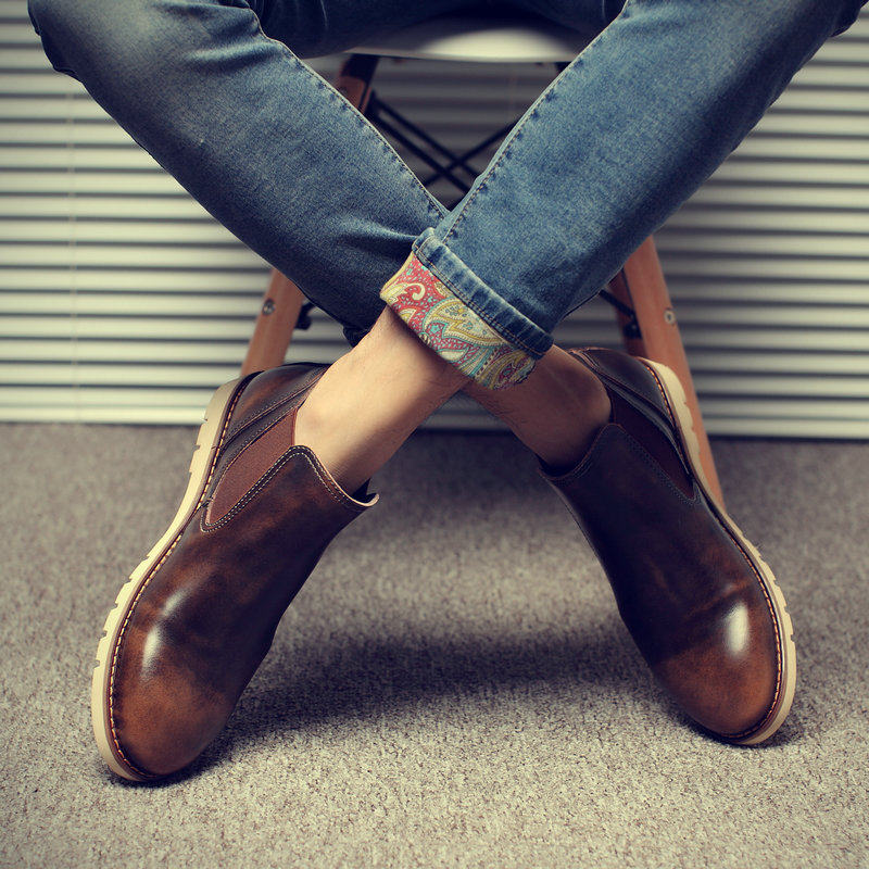 Boots - chaussures en Première couche de cuir, En plus de de vache, ronde pour hiver - Angleterre - semelle caoutchouc -