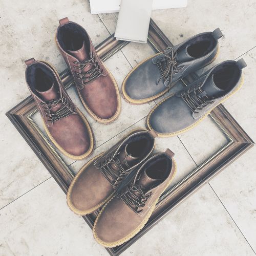Boots - chaussures en Nubuck ronde pour hiver - tendance des jeunes - semelle caoutchouc - Ref 957708
