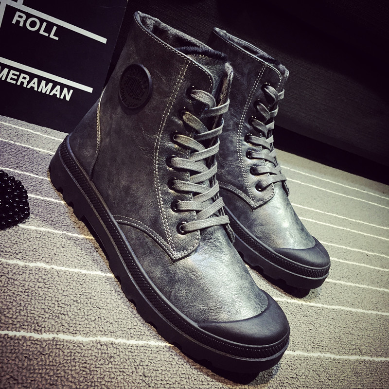 Boots - chaussures en plancher de cuir, En plus de de vache, ronde pour hiver - tendance des jeunes - semelle caoutchouc