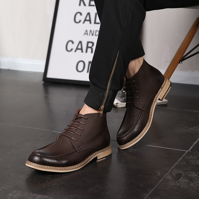 Boots - chaussures en Première couche de cuir, En plus de de vache, ronde pour hiver - Angleterre - semelle caoutchouc -