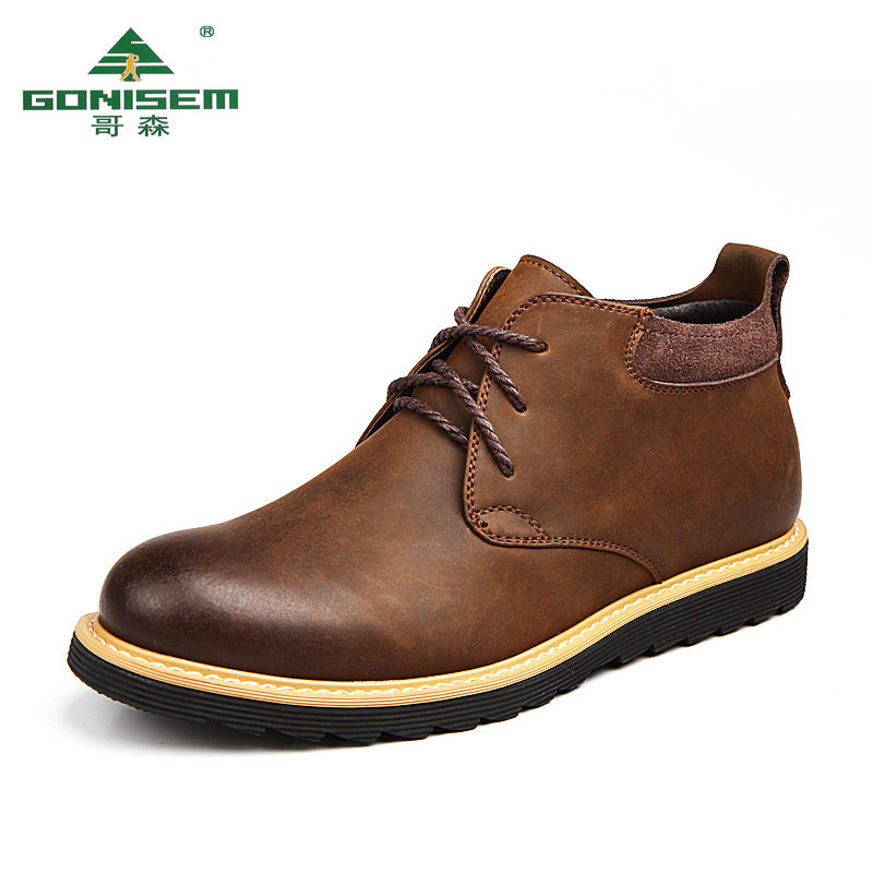 Boots - chaussures en plancher de cuir, En plus de de vache, GONISEM ronde pour printemps - loisir - semelle caoutchouc