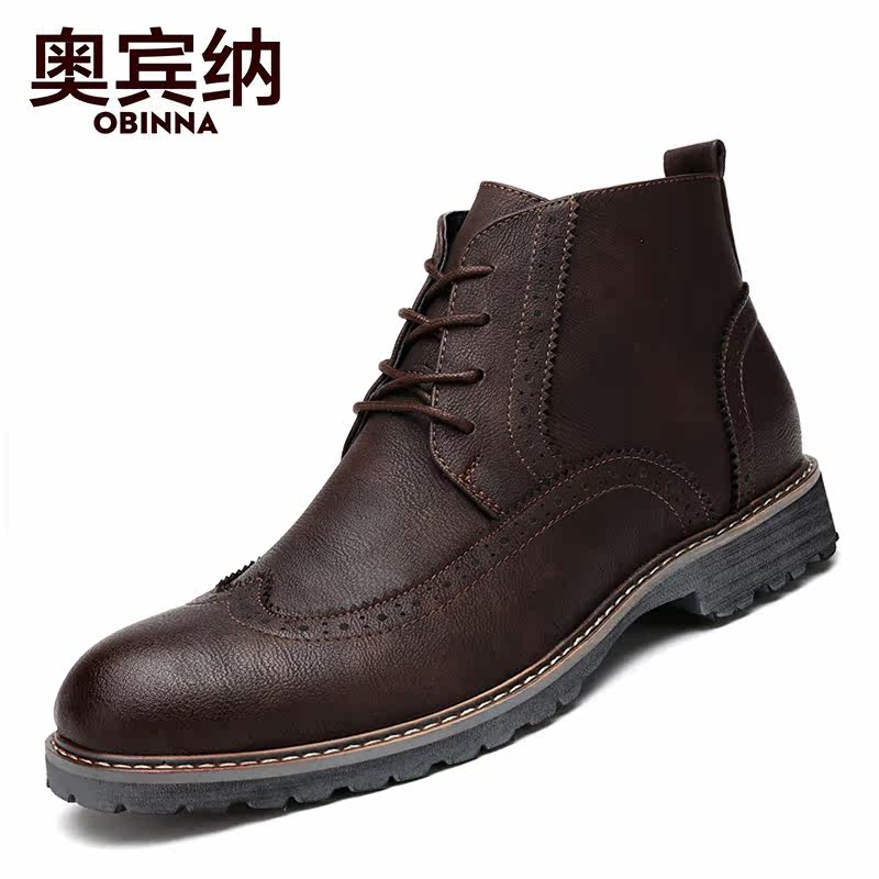 Boots - chaussures en cuir ronde pour hiver - entreprise - semelle caoutchouc - Ref 952655