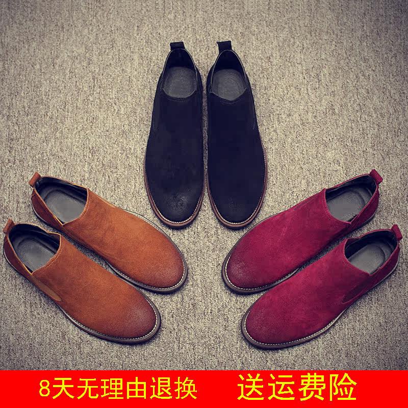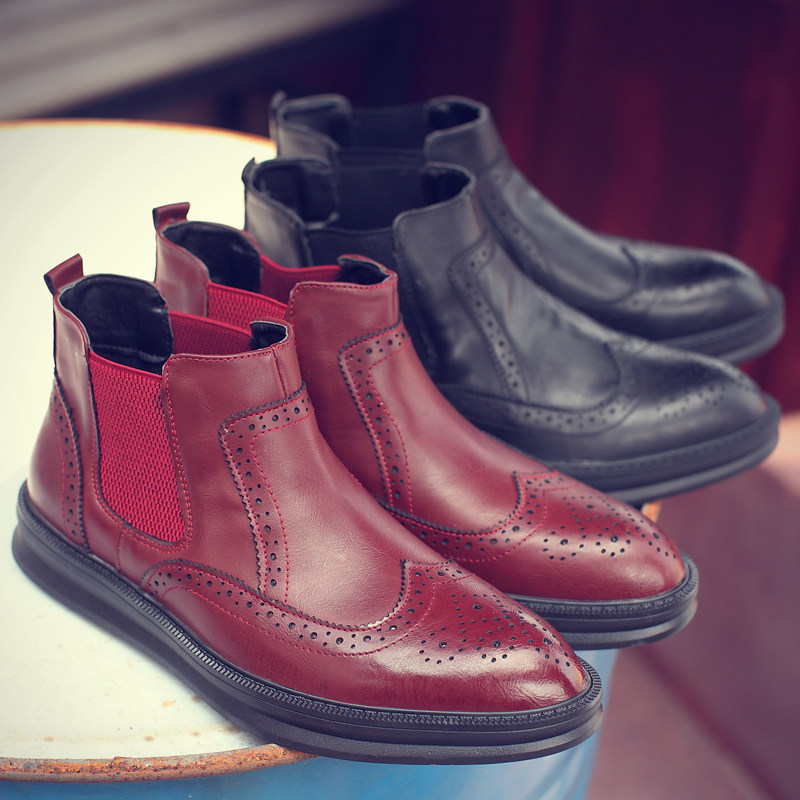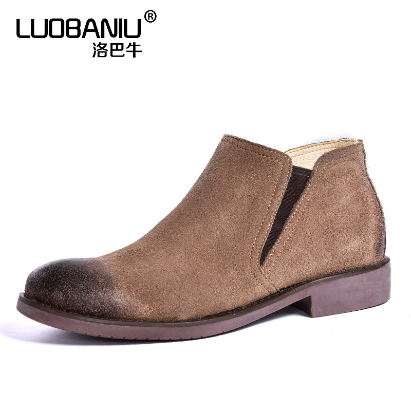 Boots - chaussures en plancher de cuir, En plus de de vache, ronde pour printemps - Angleterre - semelle caoutchouc - Re