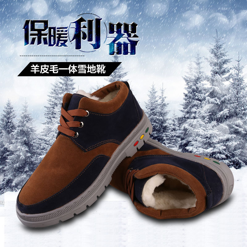 Boots - chaussures en plancher de cuir, En plus de de vache, ronde pour hiver - loisir - semelle caoutchouc - Ref 957598