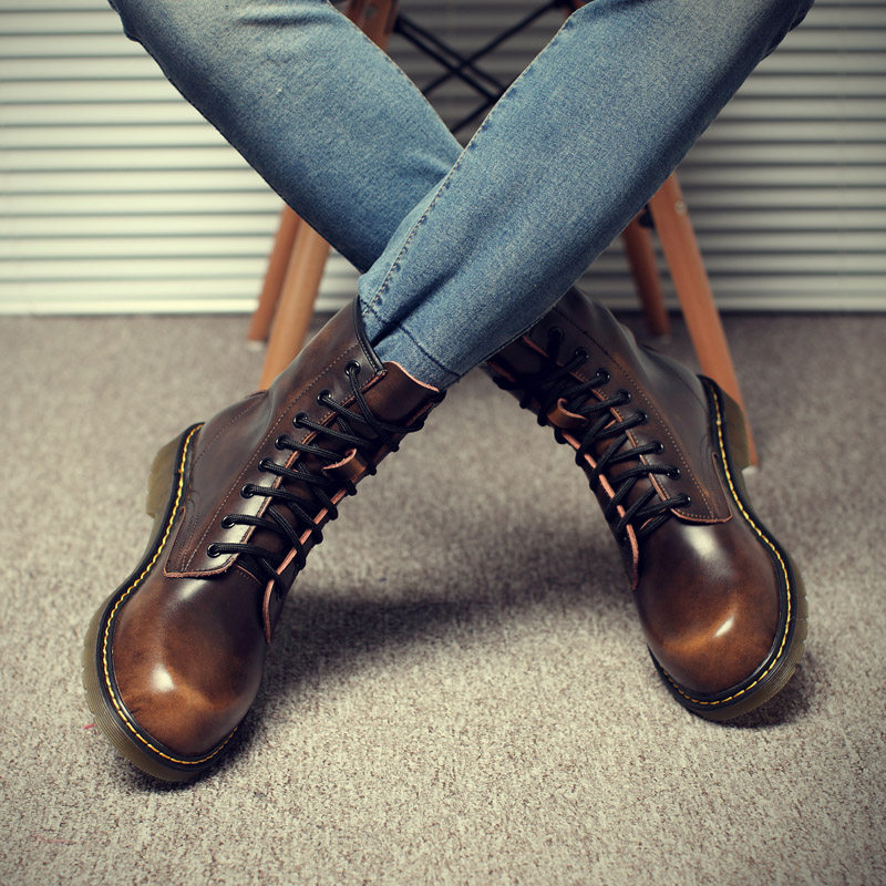 Boots - chaussures en plancher de cuir, En plus de de vache, ronde pour printemps - tendance des jeunes - semelle caoutc