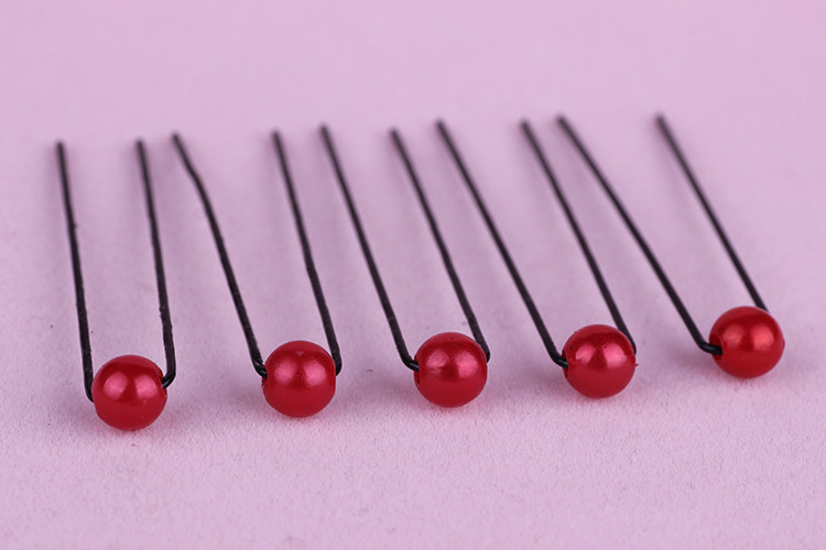 interpolation Accessoires de cheveux coiffure rouge de mariage blanc perle en forme de U Bride plat d'épingle fait ne mariée