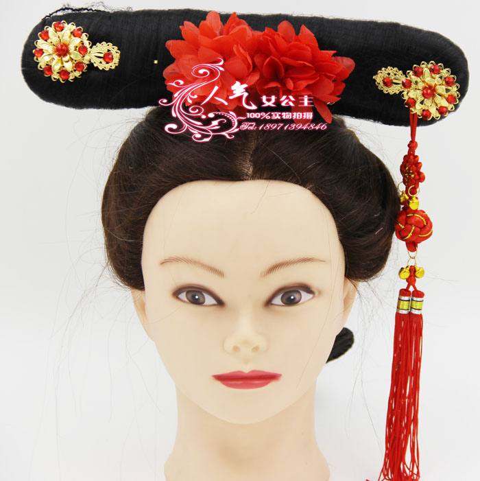 Zhen Huan Chuan étape surprenante / studio perruques costume de style / Dynastie Qing perruque de cheveux féminine / tête ménisque drapeau