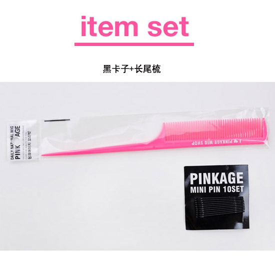Avant la tête pinkage d'âge rose soin de perruque paquet boulette bangs queue de cheval noire longue queue peigne pince +