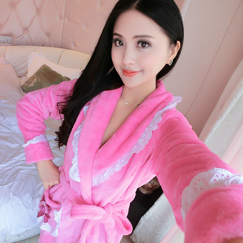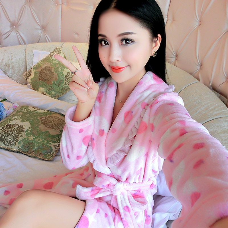 Automne et hiver épais peignoir en flanelle hiver nuisette Mme corail pyjama en velours mignon longue section de survêtement de Modèle unie Informations techniques - Genre : jeunesse